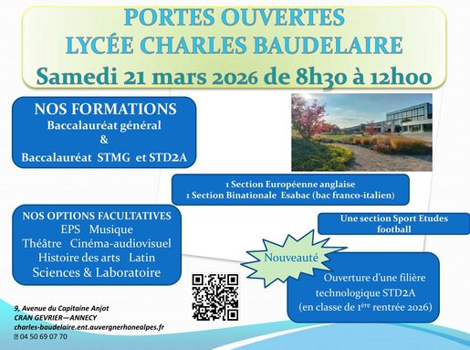 Le samedi 21 mars 2026 de 8h30 à 12h pour les secondes, premières et terminales